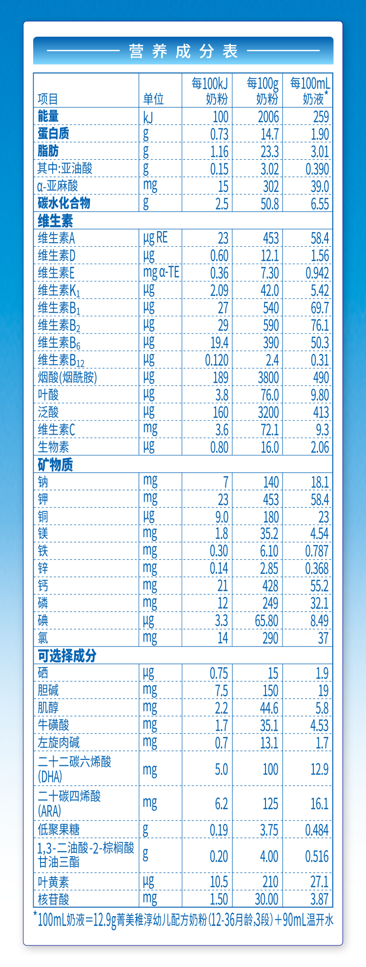 營養(yǎng)成分表